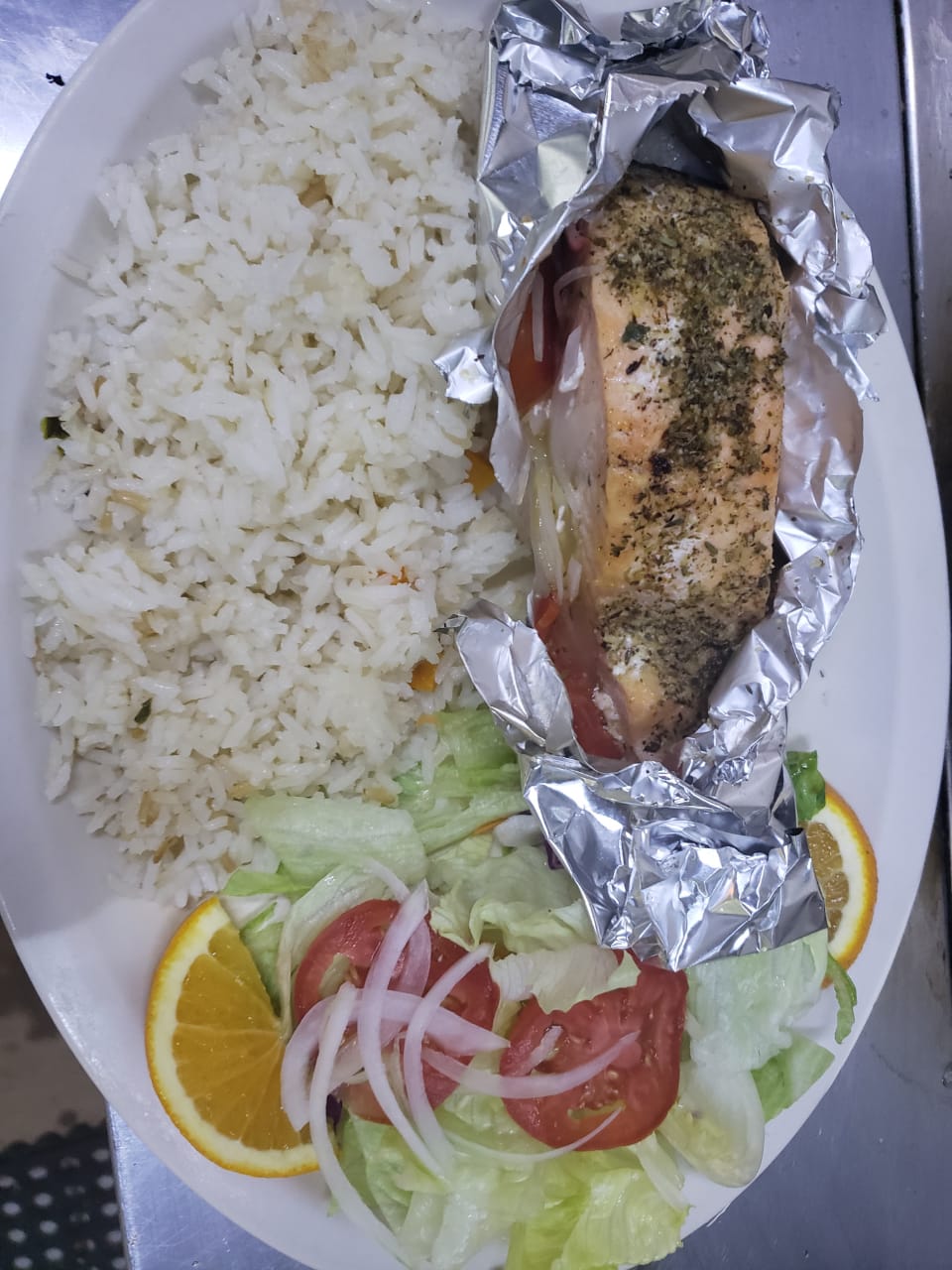 SALMON COSINADO CON HIERBAS FINAS ENVUELTO EN ALUMINIO