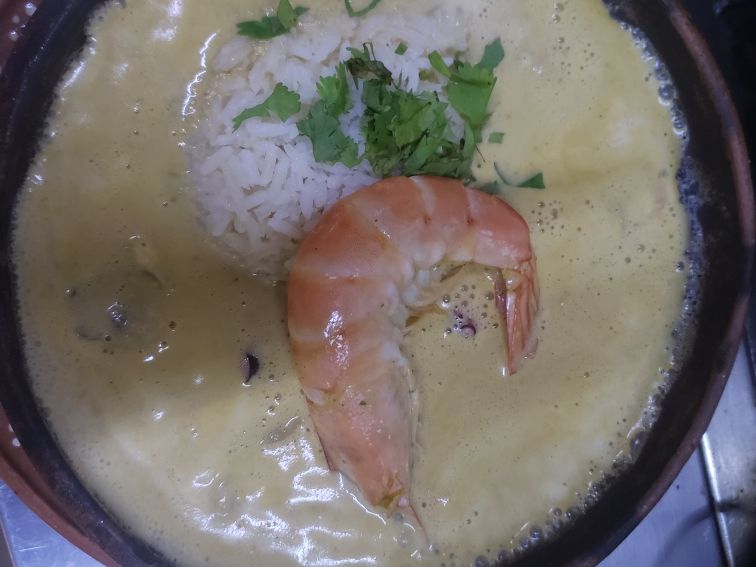 CAMARON GRANDE GUISADO CON TROZOS DE AOS DORADOS 6 PIEZAS ICLUYE ARROZ Y ENSALADA