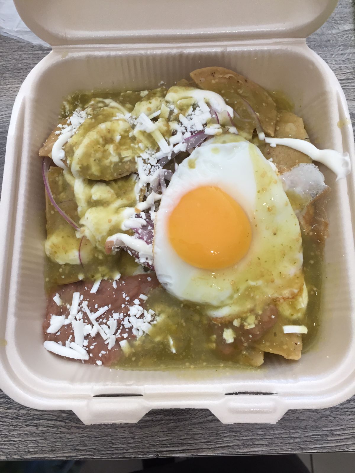 verdes o rojos dos huevos estrellados o a la mexicana, pollo y frijoles