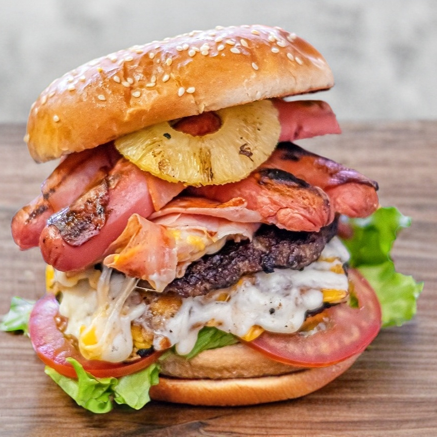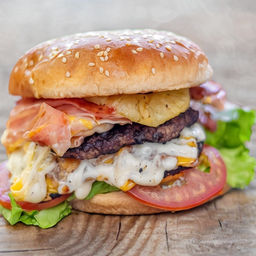 Preparada con doble carne, queso amarillo, queso blanco, verduras y aderezos.