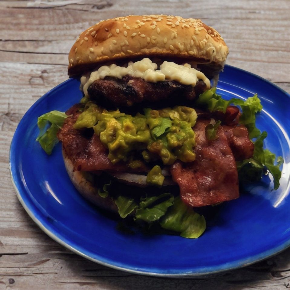 Preparada con carne, guacamole, tocino, queso amarillo, queso blanco, verduras y aderezos