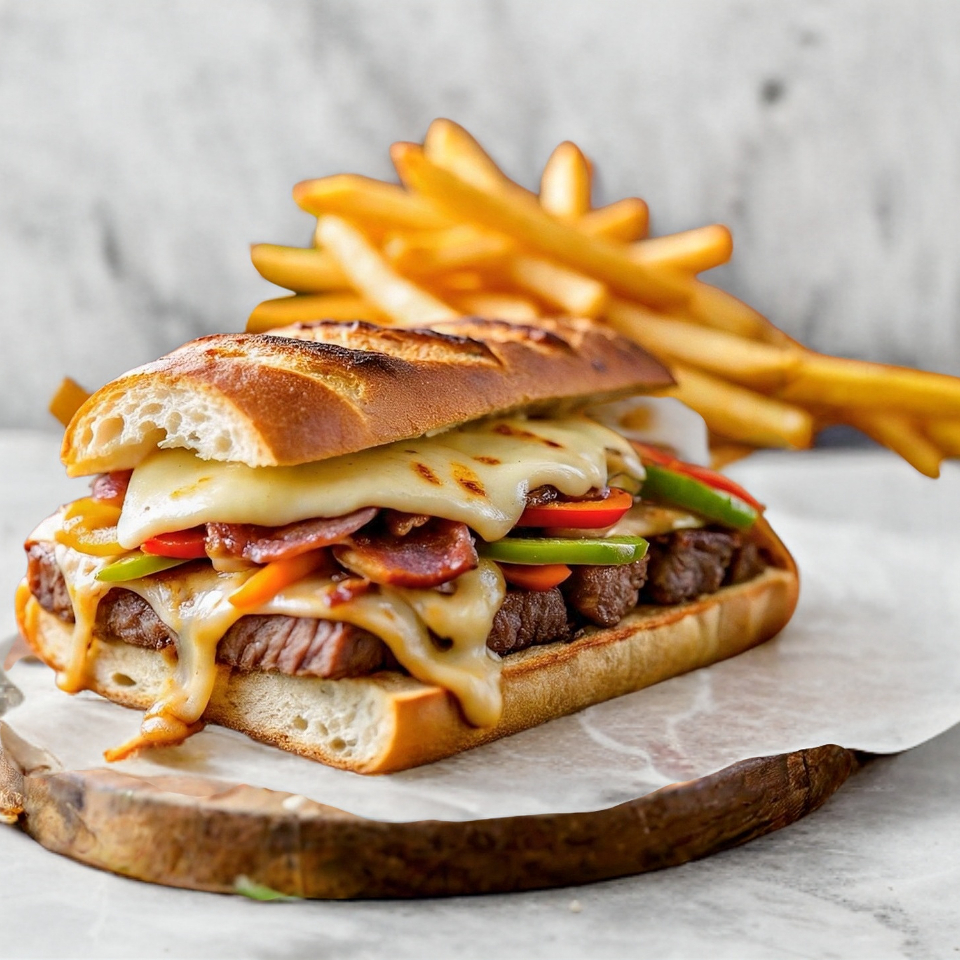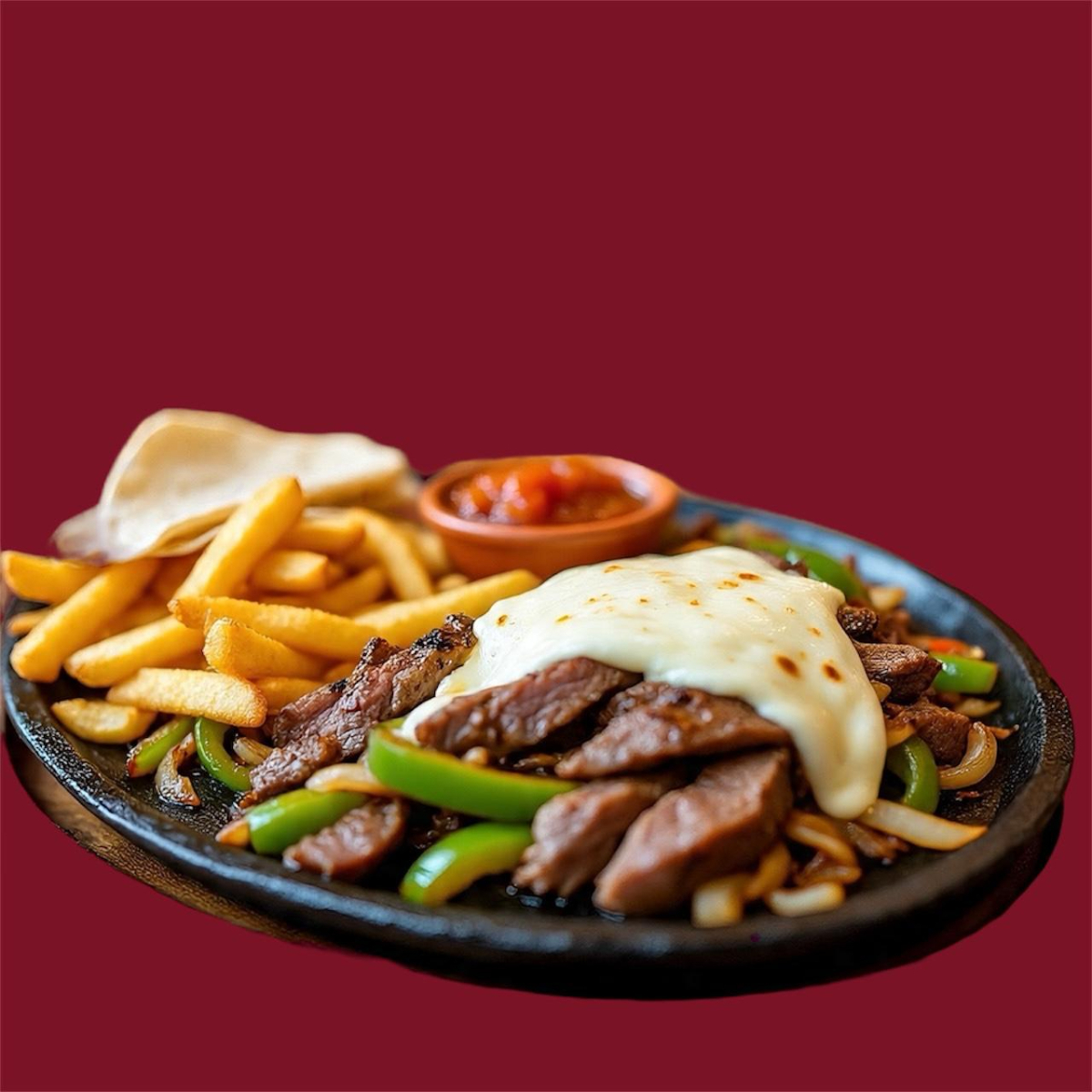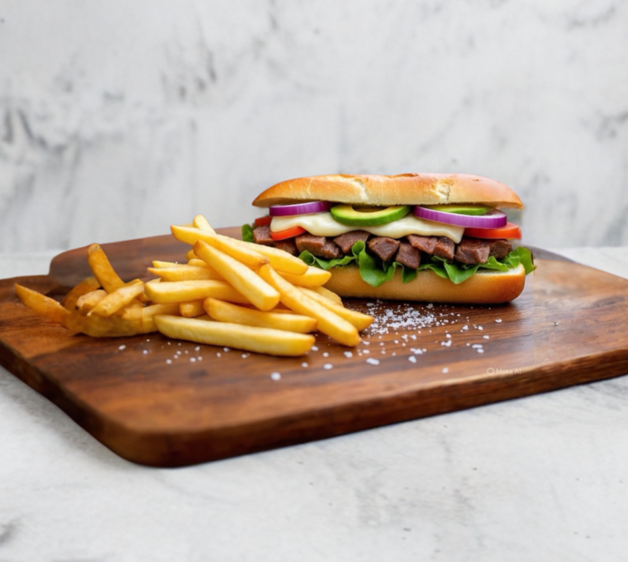 Phili Queso y Carne con papas a la francesa