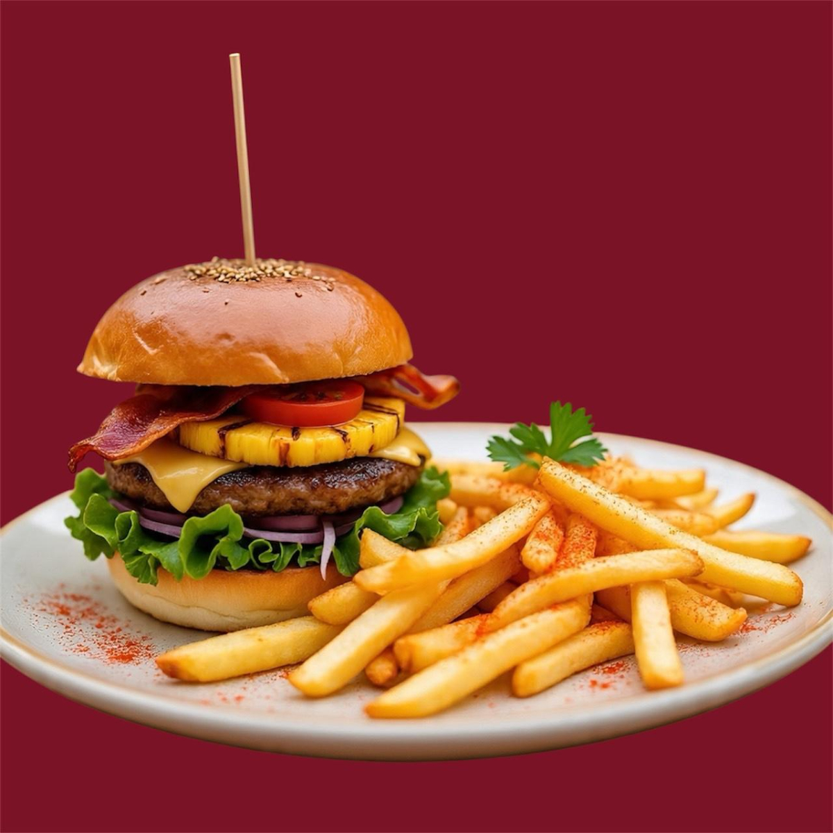 Burger hawaiana con papas