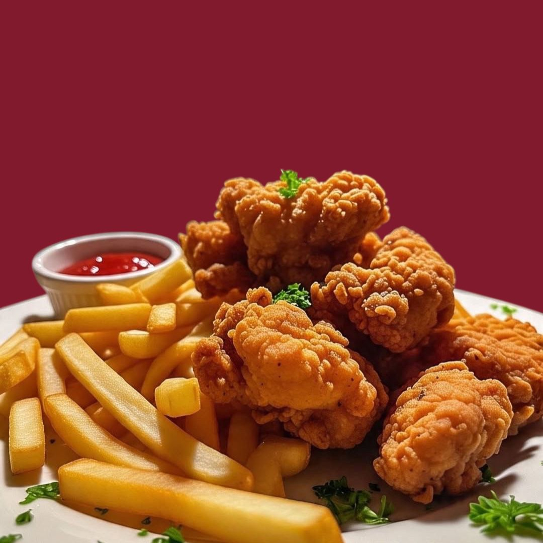 300 g Entre 6 y 8 trozos de pechuga de pollo, con un empanizado crujiente, acompañado de tu salsa favorita. y papas