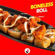Rollo empanizado, relleno de queso crema, pepino, aguacate, coronado de boneless, bañados en salsa de búfalo.