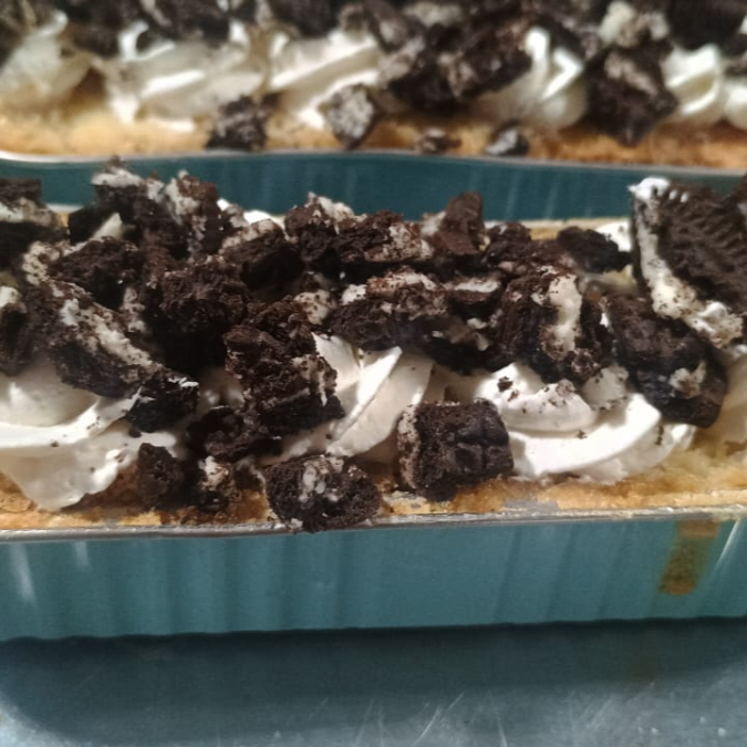 Sabor galleta oreo, crema batida, galleta oreo y galleta chip.