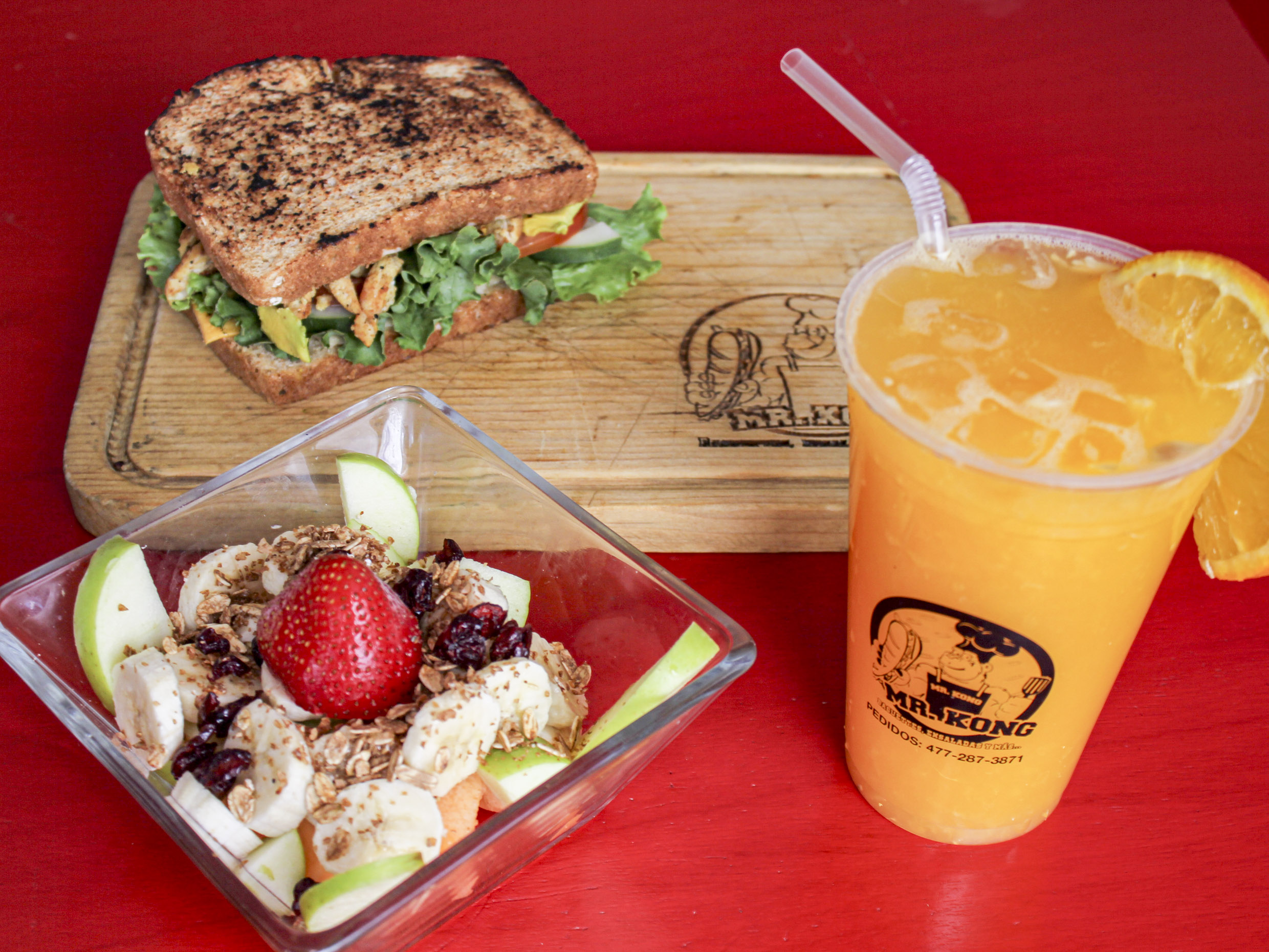 Kong (jugo de naranja, mix de frutos).