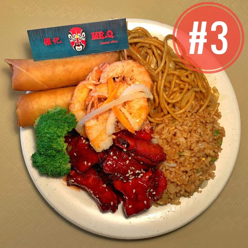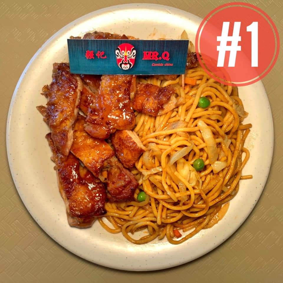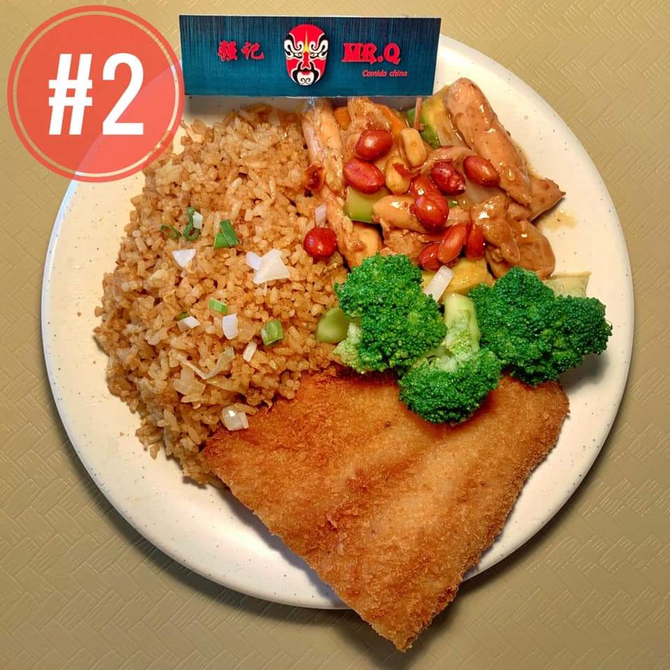 1 Guisado a escoger (filete de pescado, camarón al ajo, pollo BBQ, pollo con brócoli, entre otros), arroz o pasta, salsa a elección.