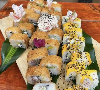 Combo de Sushi (50 piezas) – 4 personas: Incluye 5 rollos variados, uno con toque frutal. Cada rollo se prepara con queso Philadelphia, aguacate, pepino, alga nori y la proteína de tu elección. Ideal para compartir entre 3 y 4 personas. Salsa de soya por aparte.