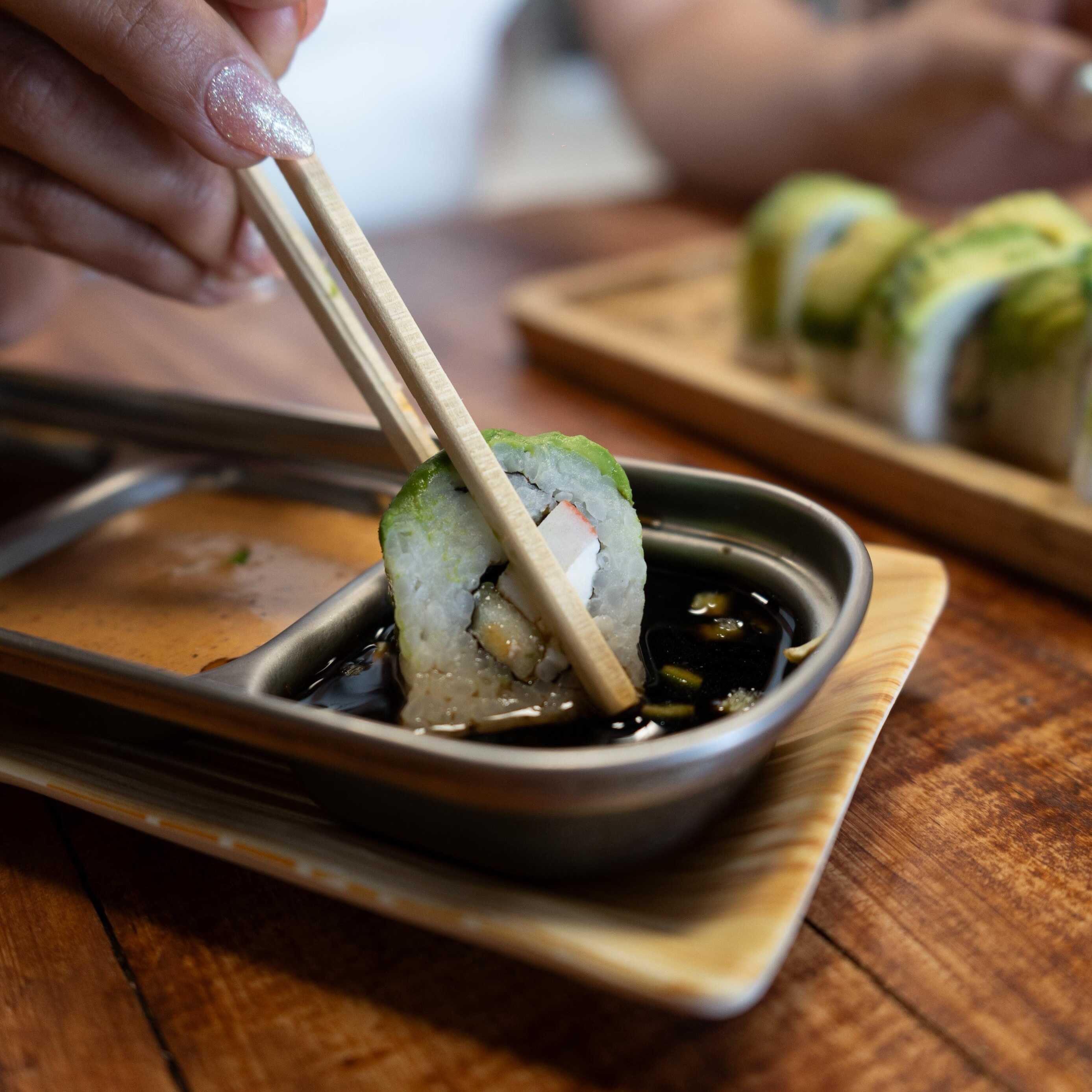 Combo de Sushi (50 piezas) Incluye 5 rollos variados, uno de ellos con un toque frutal. Cada rollo se prepara con ingredientes frescos: queso Philadelphia, aguacate, pepino, alga nori y la proteína de tu elección. Ideal para compartir entre 3 y 4 personas.