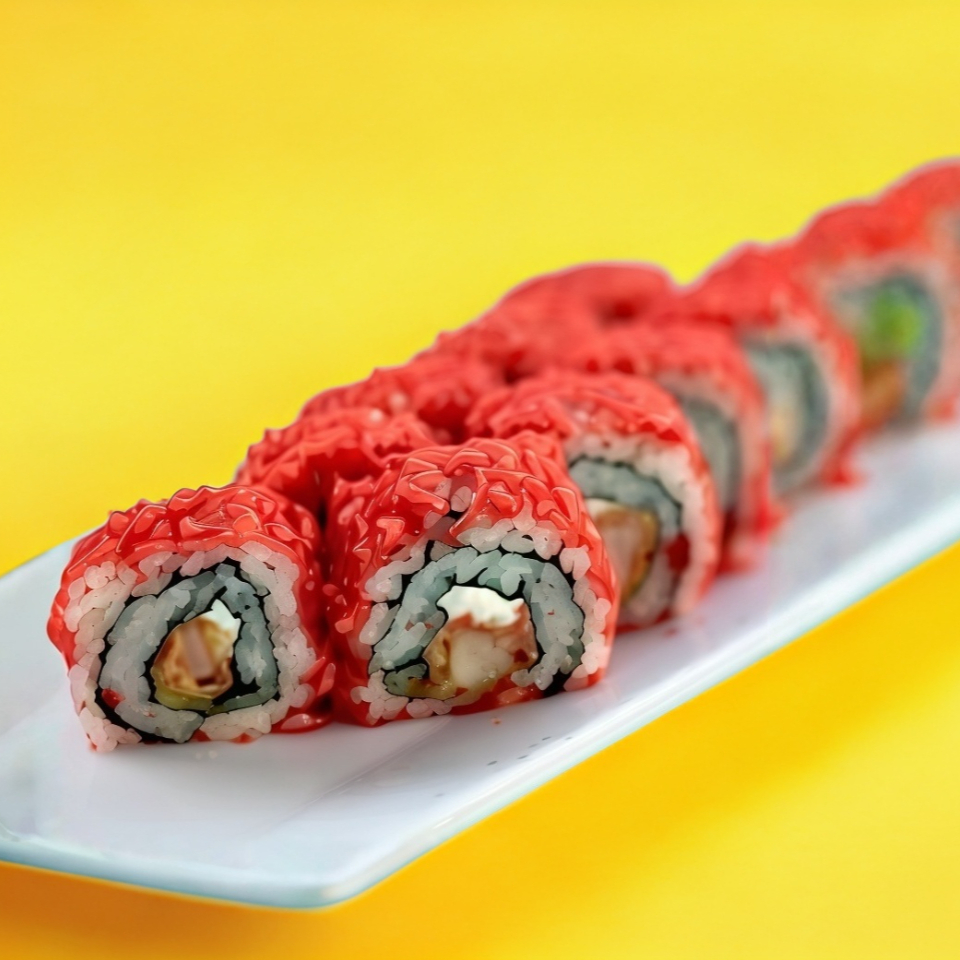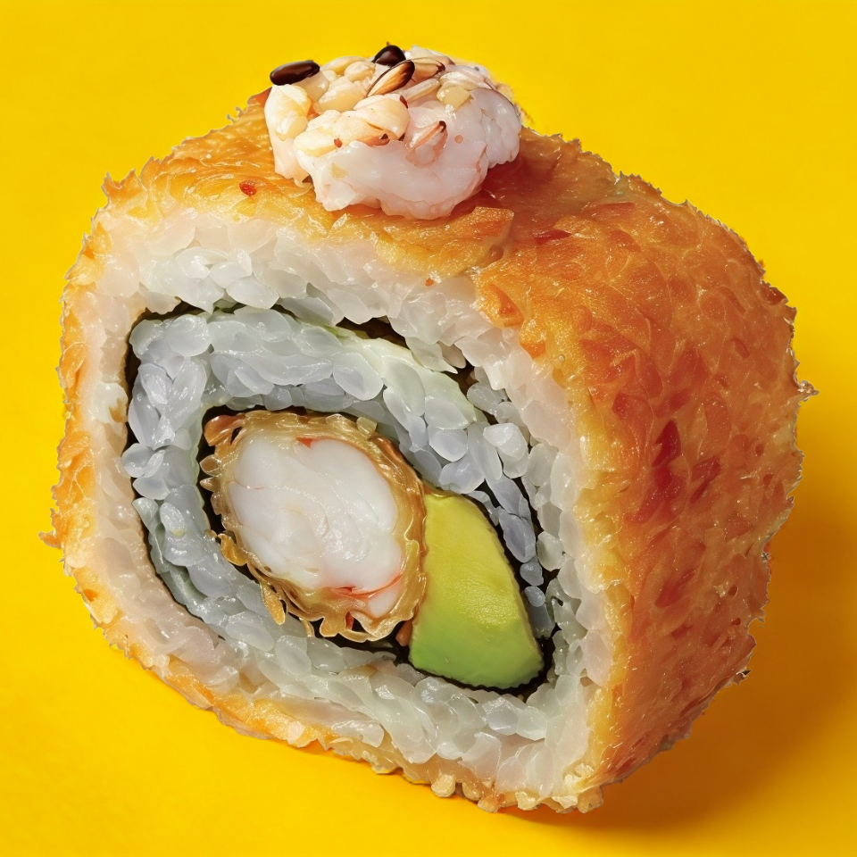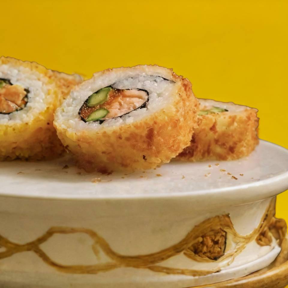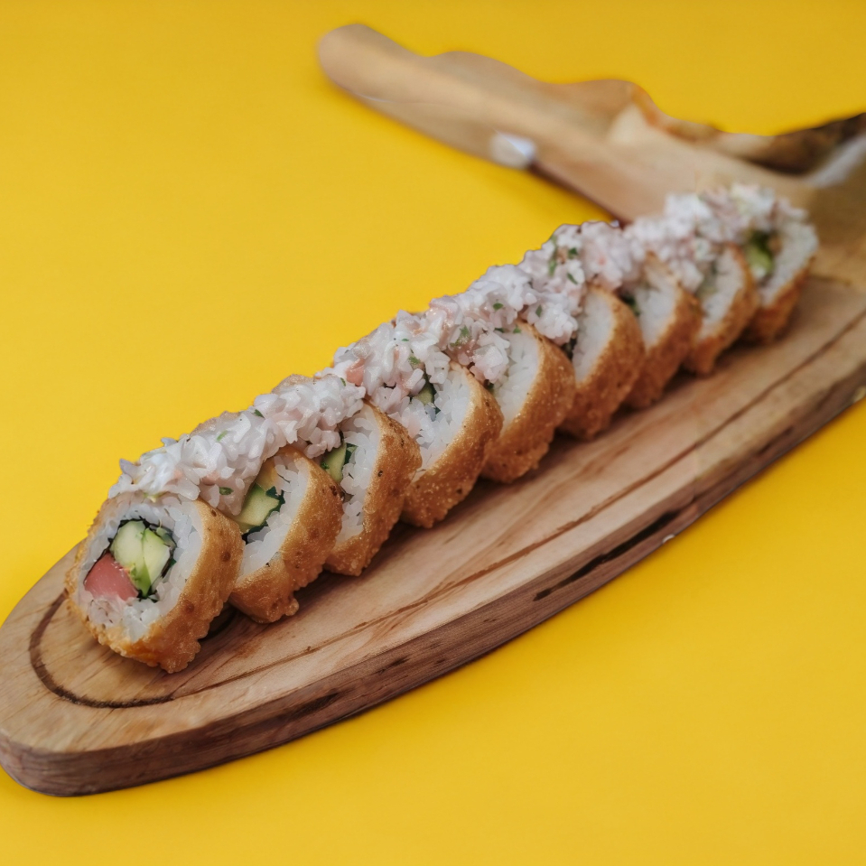 1 rollo de 10 piezas. Dentro: Filadelfia, pepino y proteína a elegir. Por fuera, empanizado con chipotle.