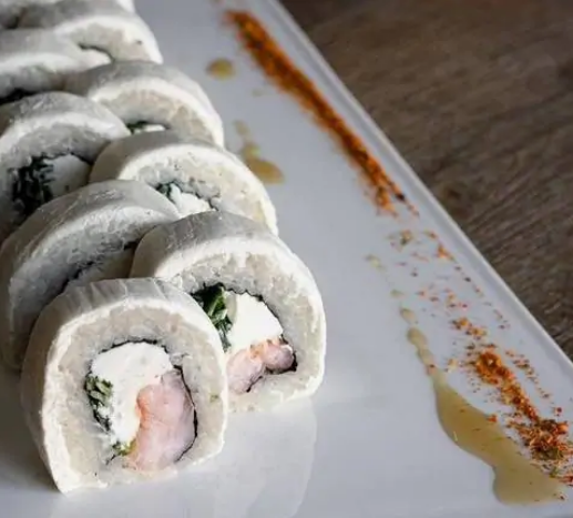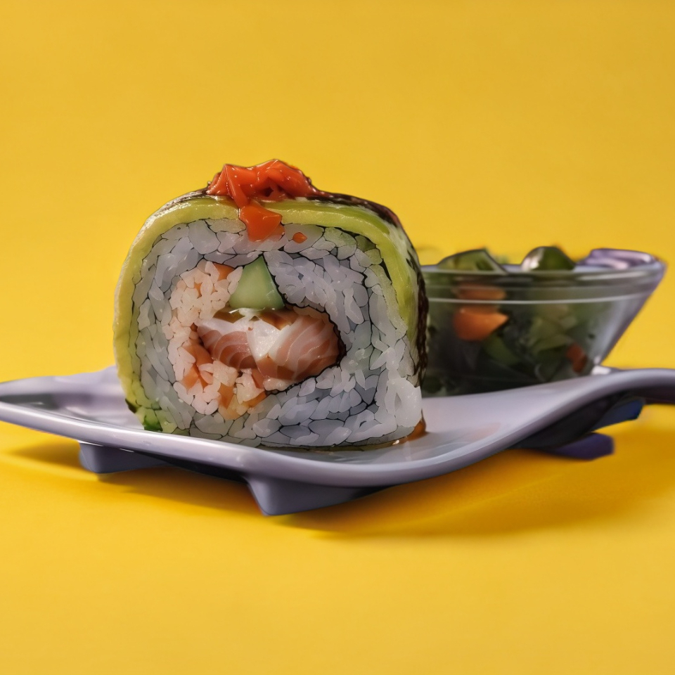 Queso philadelphia, alga, pepino, aguacate, proteína a elegir y base de alga.