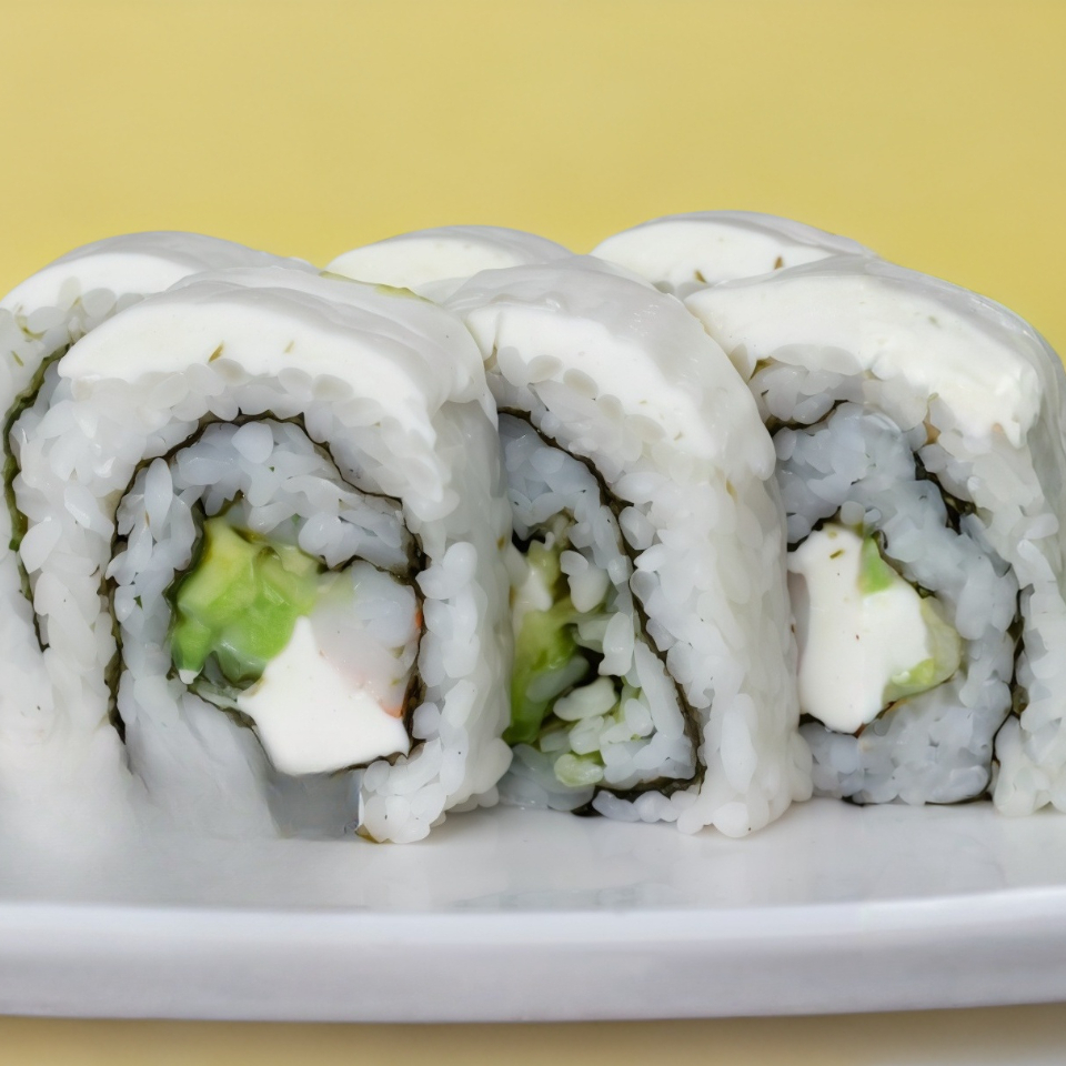 Queso philadelphia, alga, pepino, aguacate, proteína a elegir y base de queso crema.