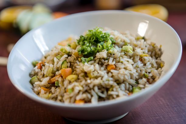 Arroz frito con verduras y huevo.