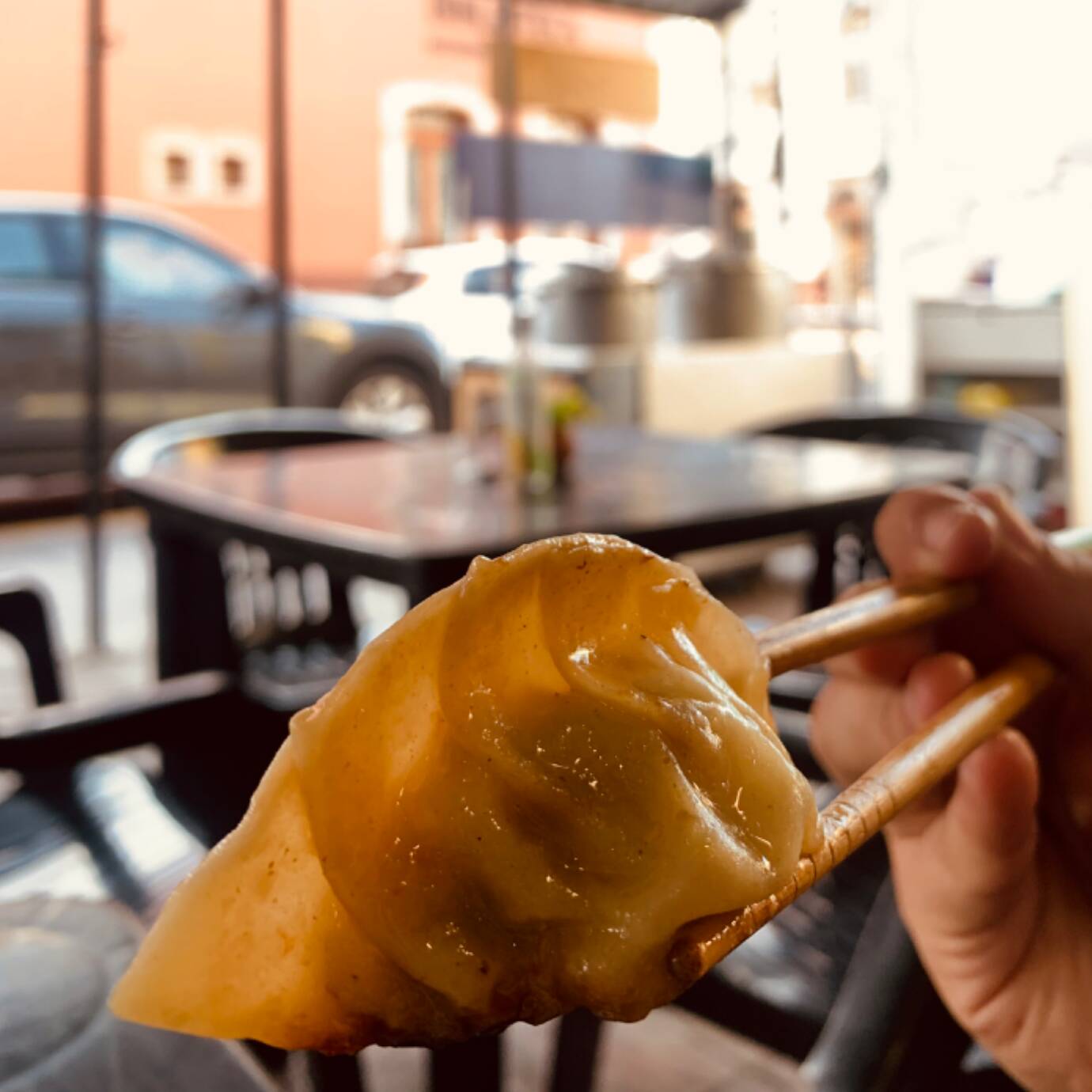empanadas al vapor con carne de cerdo y condimentos japoneses, acompañadas por una salsa especial