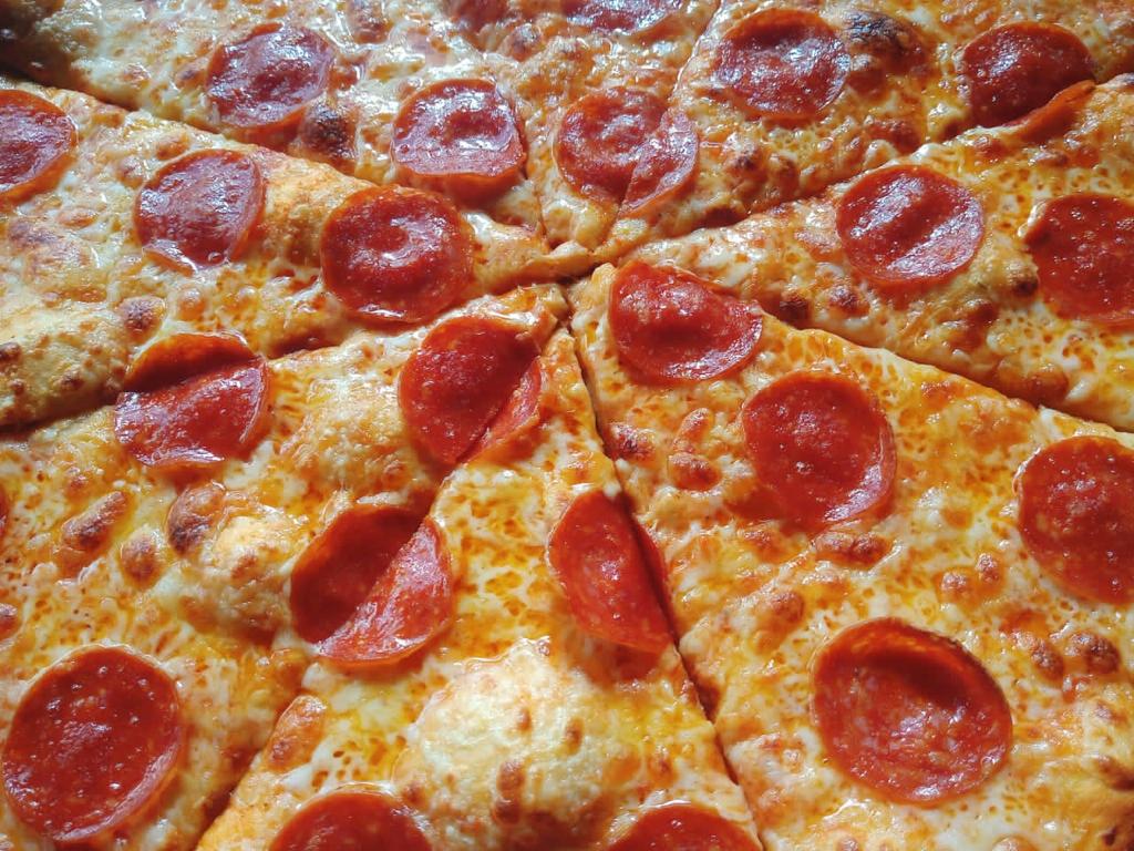 PIZZA PEPPERONI, PIMIENTO MORRON, CHAMPIÑONES Y ACEITUNA NEGRA