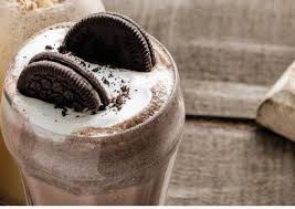 Leche deslactosada, helado, galletas Oreo, rema batida y chispas de chocolate