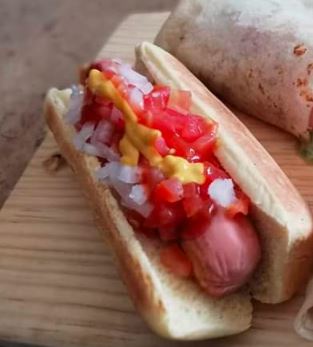 Salchicha rellena de queso asadero, envuelta en tocino.