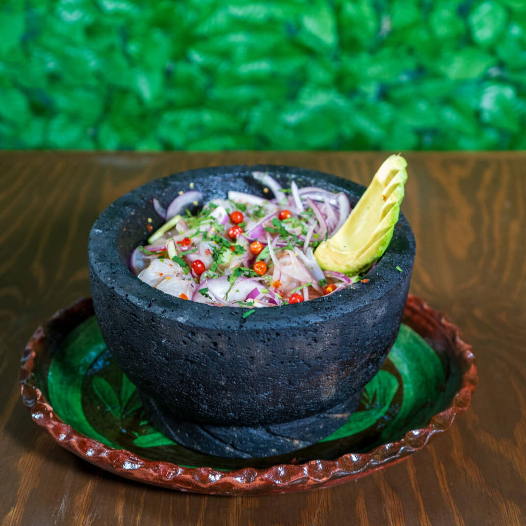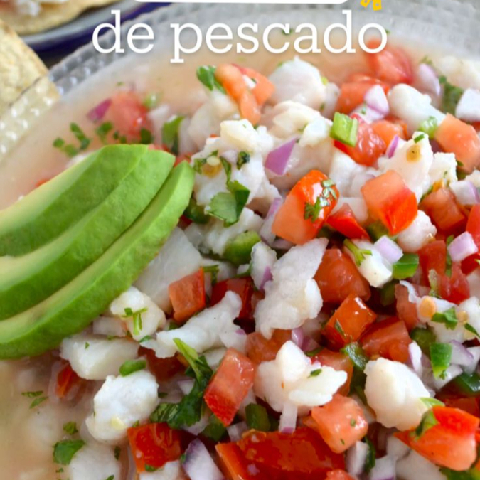 Ceviche fresco del dia, lleva jitomate, cebolla morada, cilantro y aguacate