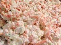 Surimi, zanahoria rayada, aderezo mayonesa .