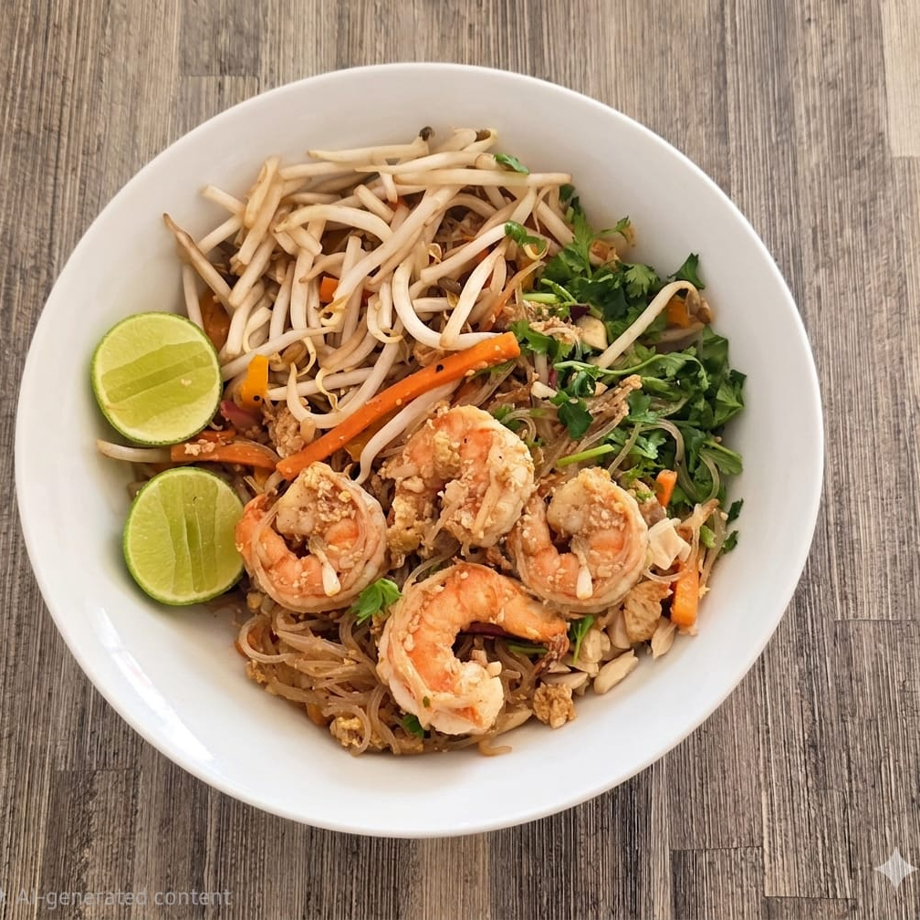 noodles de cristal, germen, camarones,cacahuate,huevo,tofu,cilantro