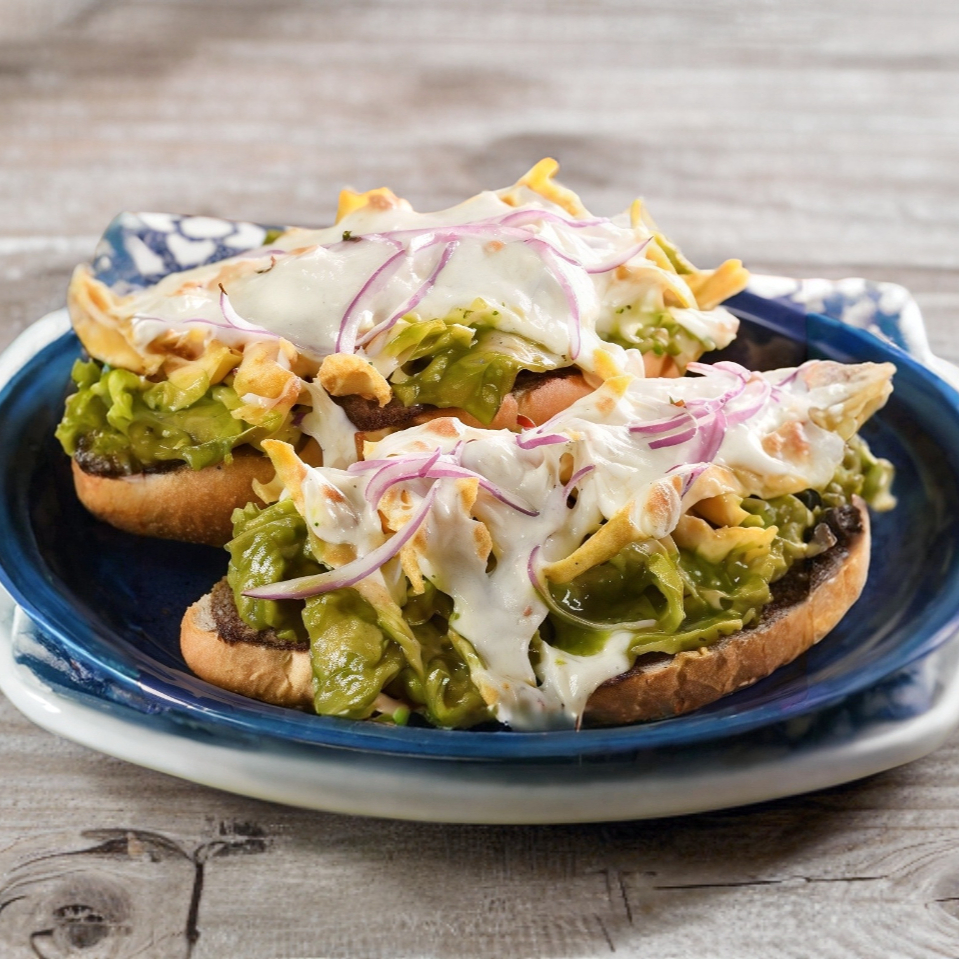 Con lechuga, jitomate, cebolla, queso, crema, acompañadas de 1 guarnición.