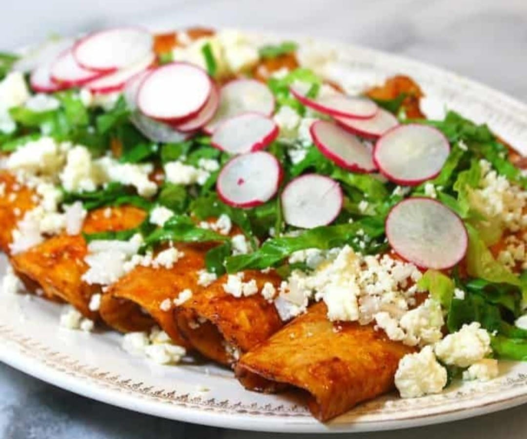 Enchiladas Rojas Rellenas de Papa o Queso 5 pzas