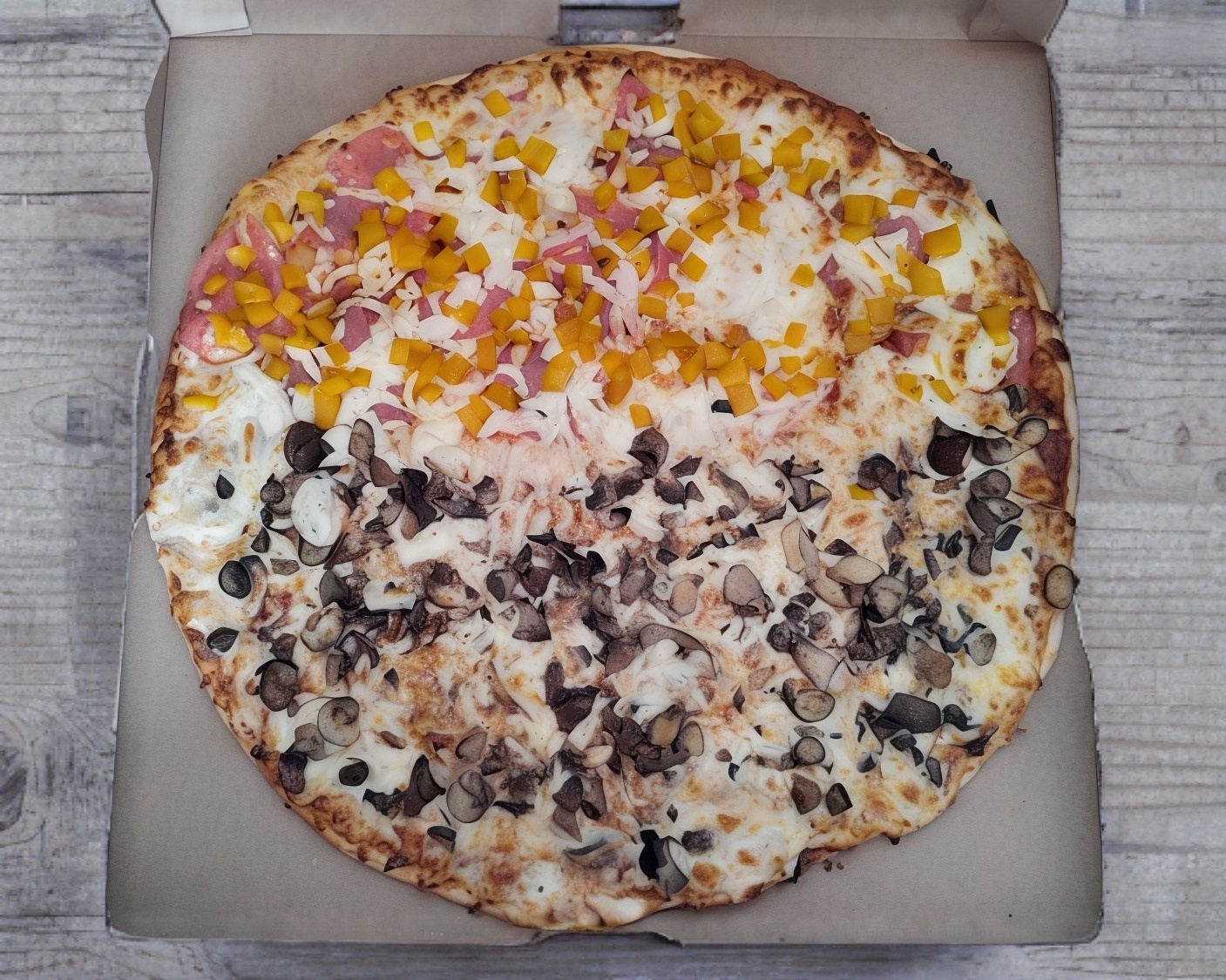 Pizza personal con los ingredientes que gustes al mismo precio: jamón, piña, salami, salchicha, champiñones, pimiento morrón, atún, chorizo, queso amarillo, tocino, cebolla , serrano