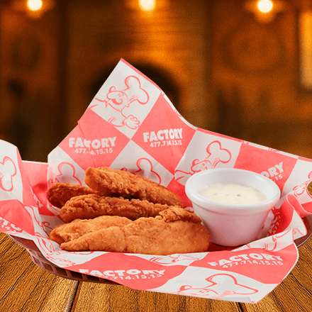 Tres piezas de tenders de pollo, crujientes por fuera y jugosos por dentro.