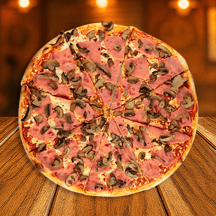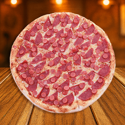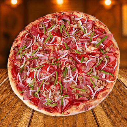 Jamón, morrón, cebolla, champiñones, salami y pepperoni