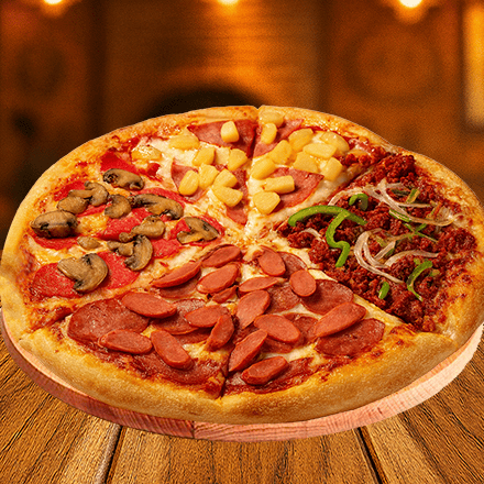 Combinación perfecta de especialidades, pepperoni, hawaiana, salami con salchicha y mexicana.