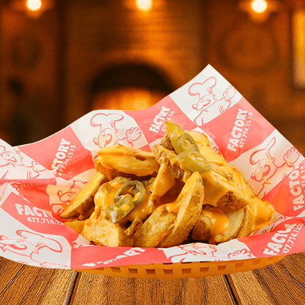 Bañadas con queso cheddar y con chiles jalapeños.