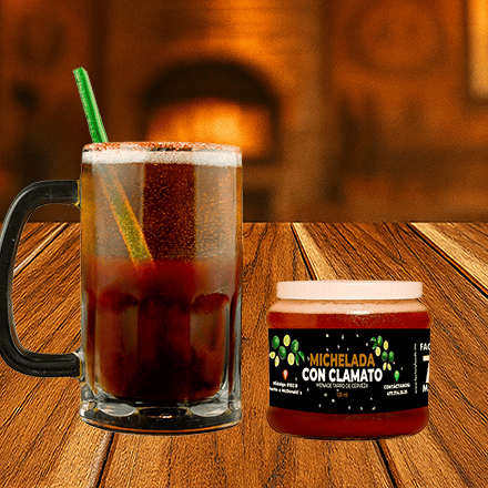 Preparado con sal, pepino, jugo de limon, chamoy en polvo y clamato. No incluye tarro y-cerveza. Enviado en un practico Pet reutilizable!!