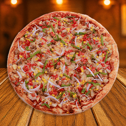 Morrón, cebolla, elote piña, champiñones y jitomate