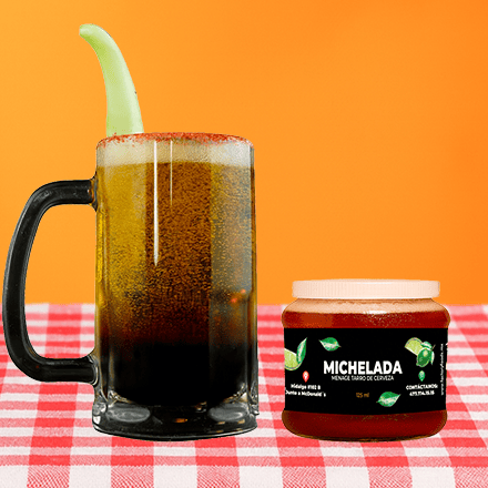Preparado con sal, pepino, jugo de limon, chamoy en polvo y clamato. No incluye tarro y-cerveza. Enviado en un practico Pet reutilizable!!