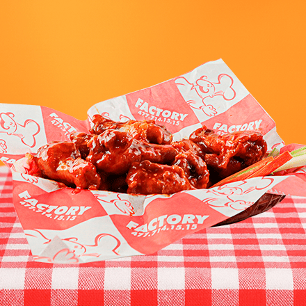 Las auténticas alitas bañadas en la salsa de tú elección con zanahoria y apio.