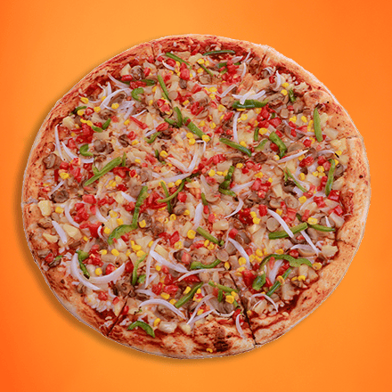 Morrón, cebolla, elote piña, champiñones y jitomate