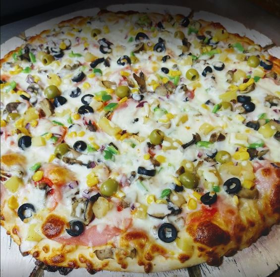 Jamón, peperoni, salami, salchicha, piña, aceituna verde, aceituna negra, elote, cebolla y pimiento morrón.