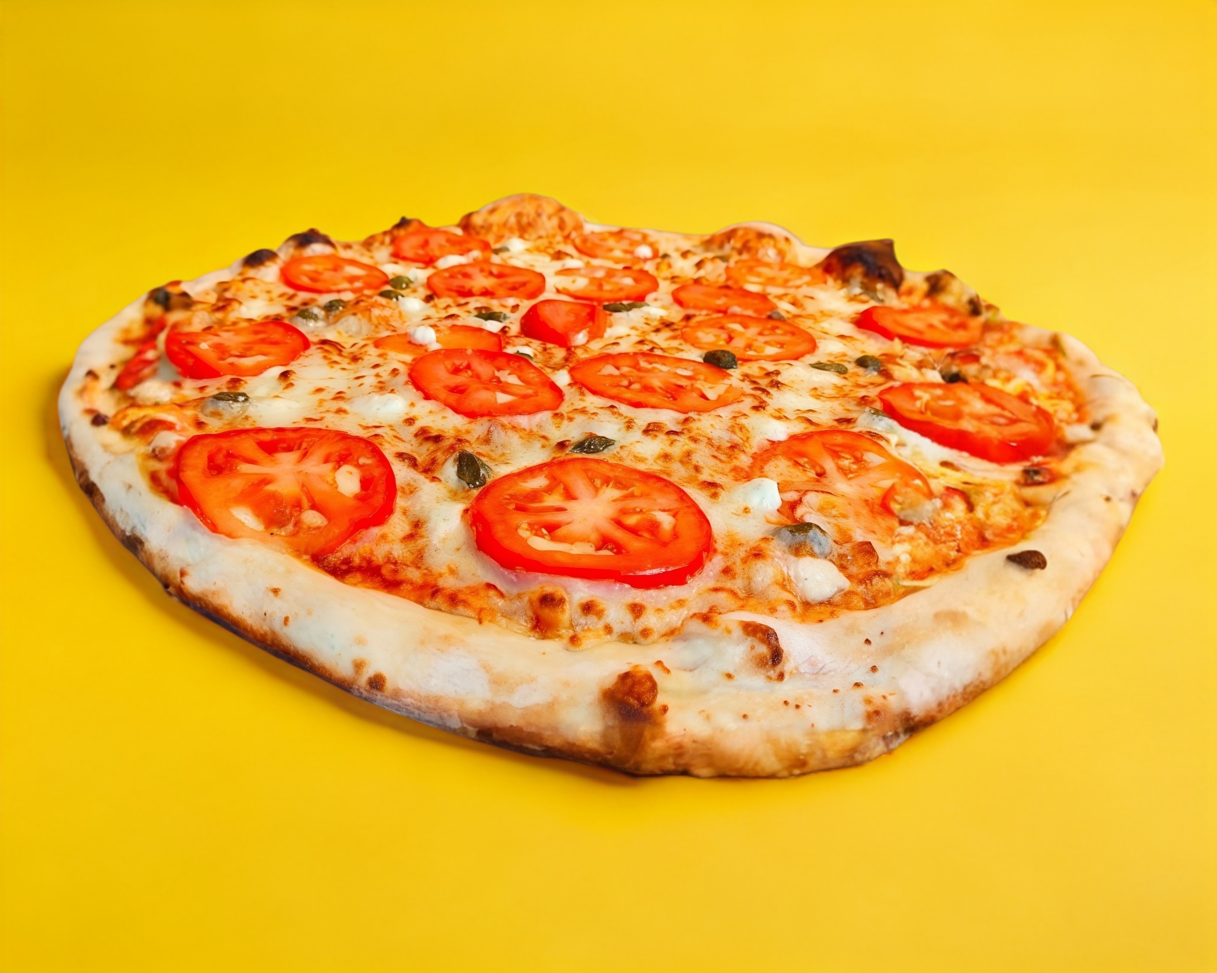 Pizza grande 36 cm. Queso mozzarella, jitomate, pimienta negra y aceite de oliva extra virgen. Todas nuestras pizzas son artesanales con pasta delgada, elaboradas al momento, seleccionando ingredientes de calidad y horneadas en horno de piedra a la leña.