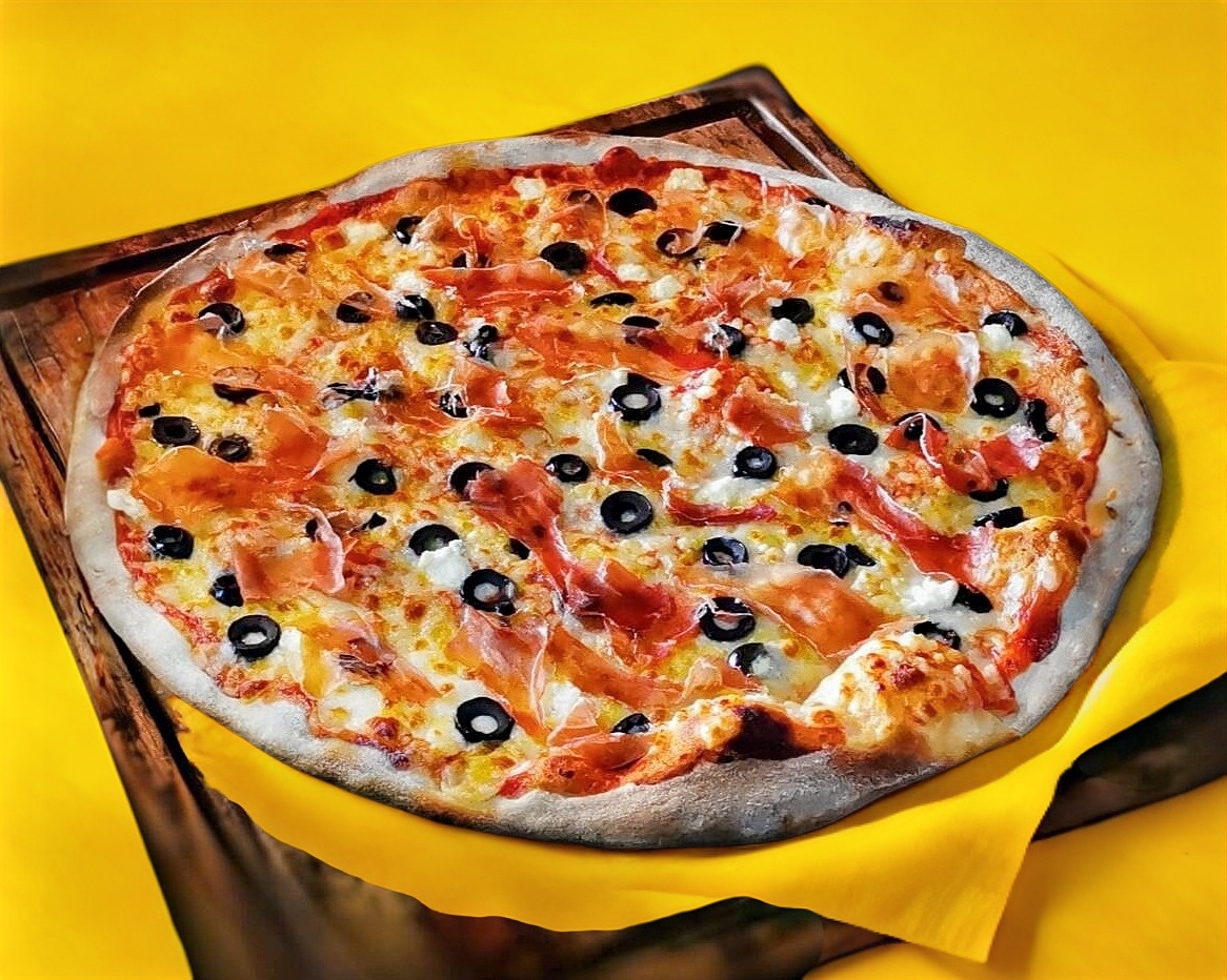 Pizza Jamón Serrano y Aceituna Negra