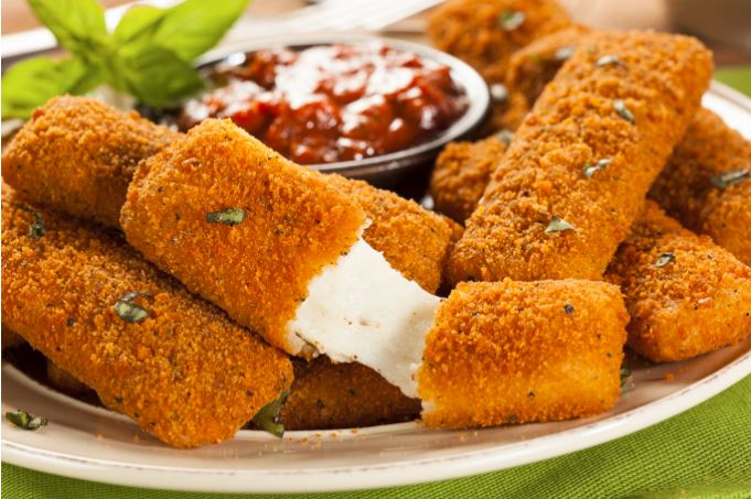 Disfruta de 5 ricos dedos de queso crujientes, rellenos con queso mozzarella.