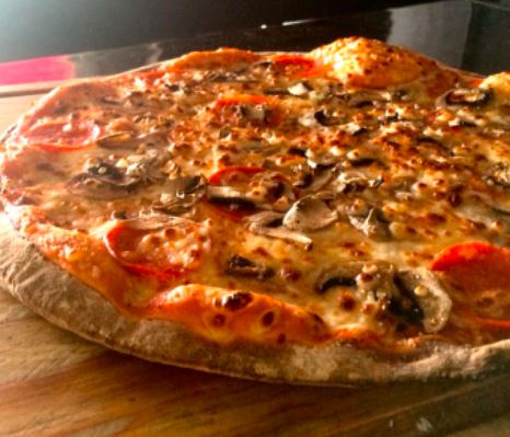 Pizza grande 38 cm. Champiñón natural fileteado con queso mozzarella, todas nuestras pizzas son artesanales con pasta delgada, elaboradas al momento, seleccionando ingredientes de calidad y horneadas en horno de piedra a la leña.