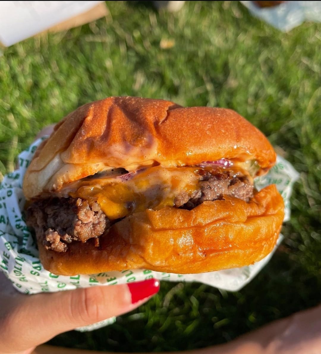 Salsa BBQ, molida, tocino y cebolla.