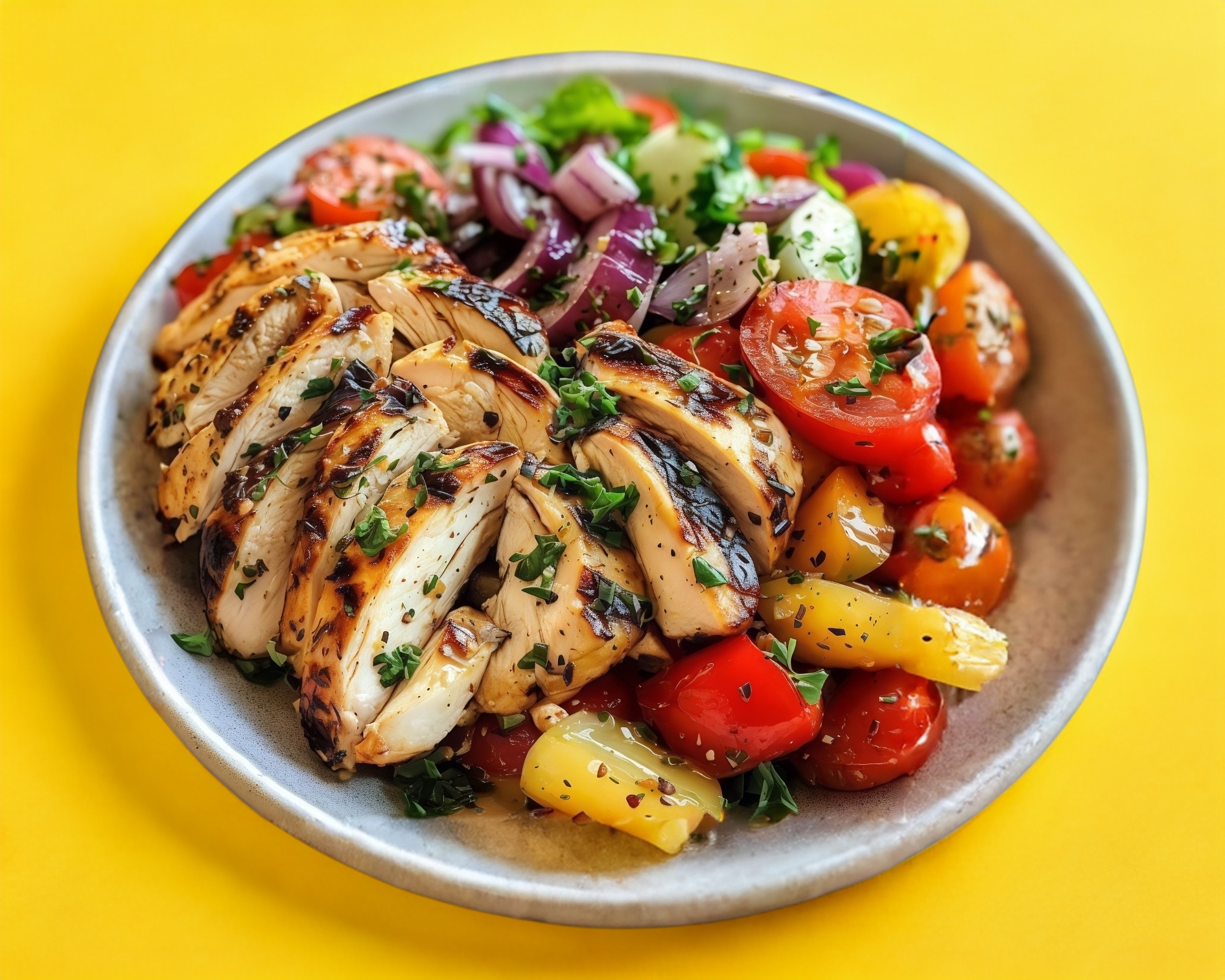 Arroz, aguacate, pepino, zanahoria, brócoli al vapor, filete de res a la plancha sazonado mas dip chipotle.