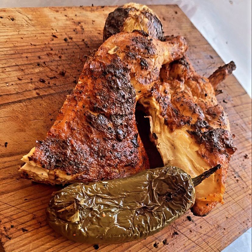 Acompañadas de cebollita asada, chiles asados, salsa de la casa y tortillas.