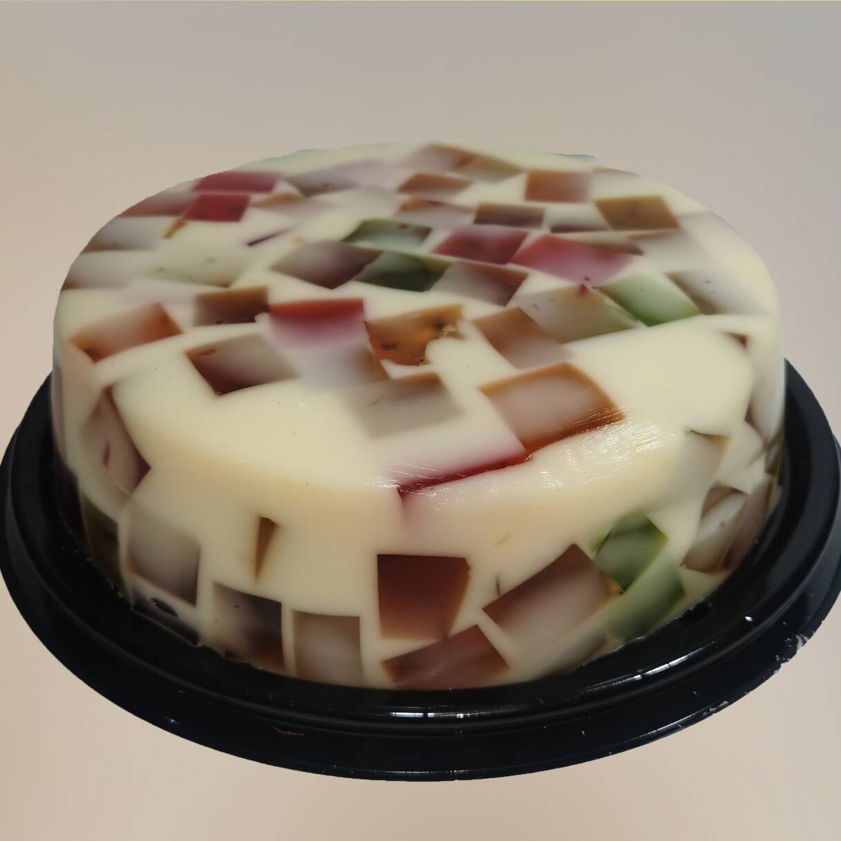 Gelatina redonda grande de agua sabor, anís, naranja, piña, jerez, limón y fresa.