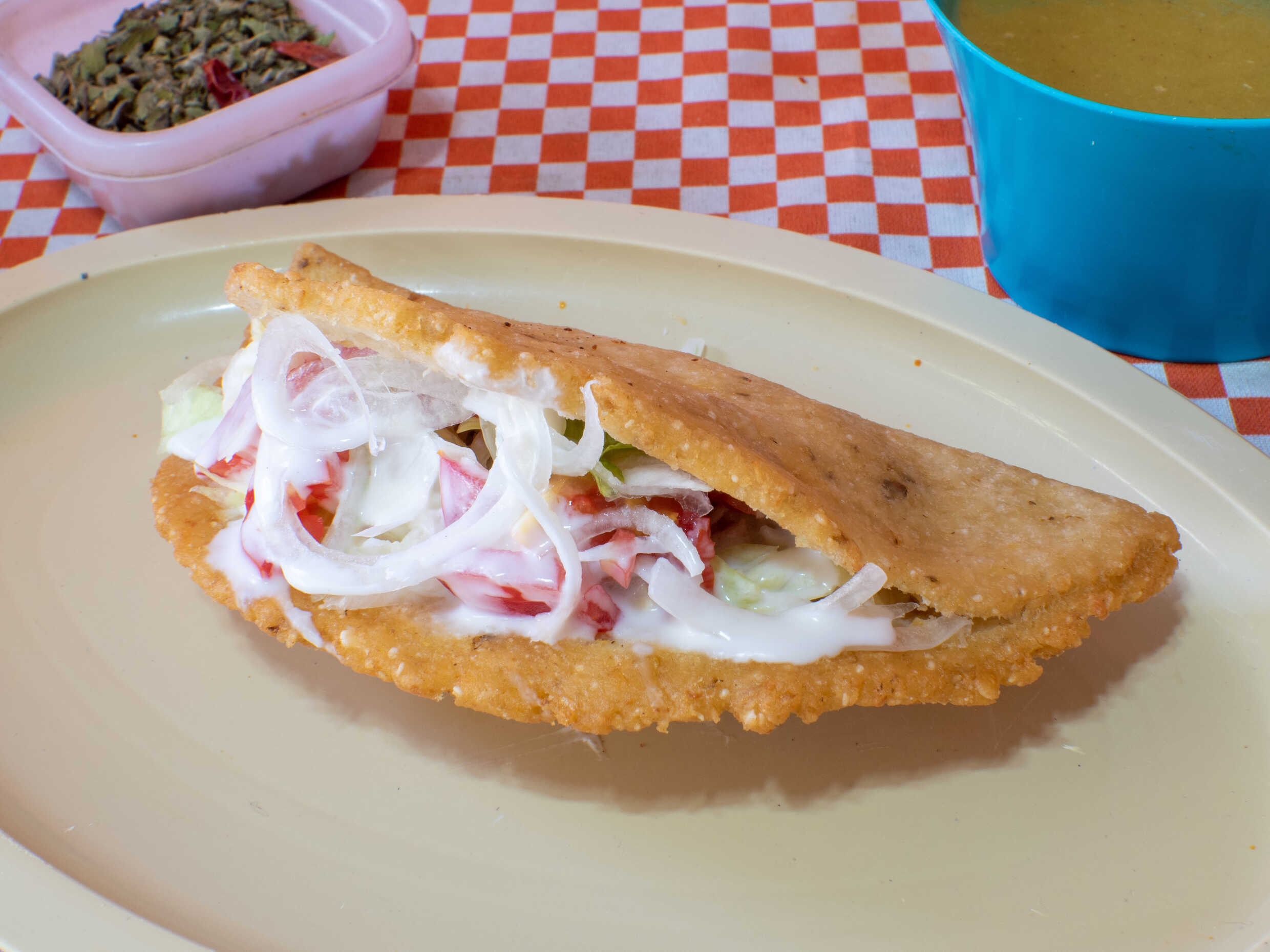 Incluye lechuga, cebolla, jitomate, crema y salsa aparte.