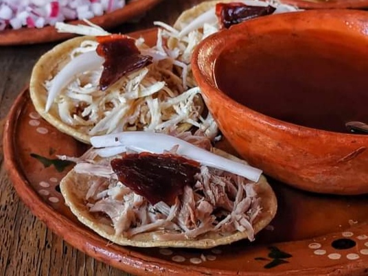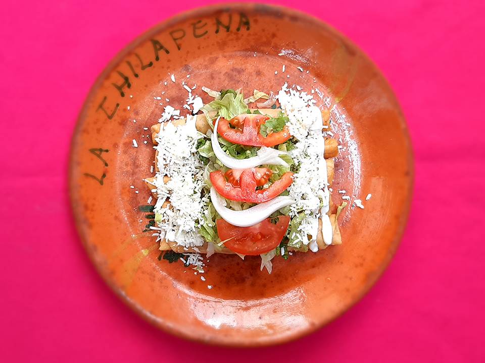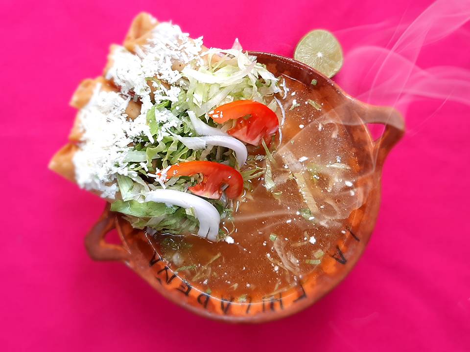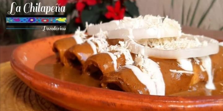 Bañadas en deliciosa salsa de tomate verde, gratinadas y con rodajas de cebolla.