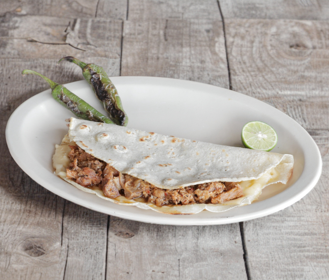 Hechas con tortilla grande de maíz, queso asadero y guisados de su eleccion.