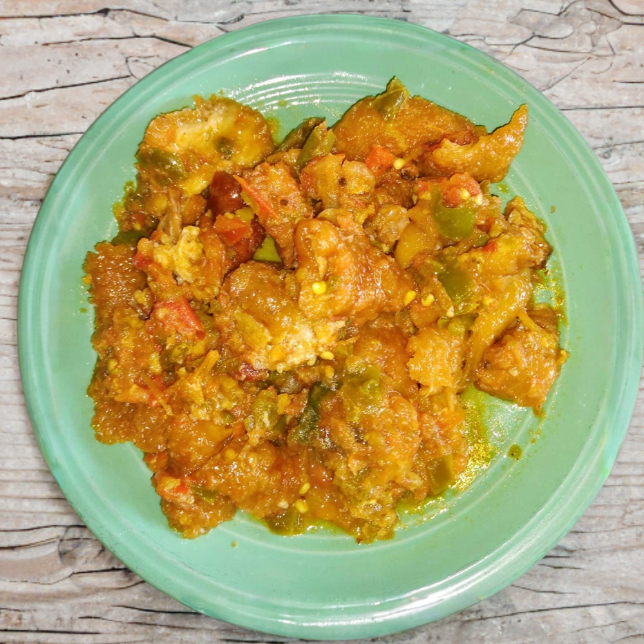 Termo de medio litro de papas guisadas con jitomate y cebolla.